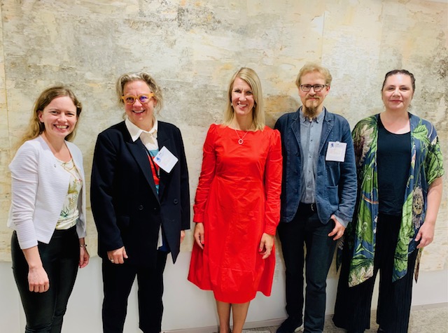 Kuvassa: Aino Herranen (Sulasol ry), Sanna Saarinen (Suomen Musiikkioppilaitosten liitto), tiede- ja kulttuuriministeri Sari Multala, Niilo Tarnanen (Suomen musiikkineuvosto), Anna Dantchev (Suomen musiikkineuvosto).