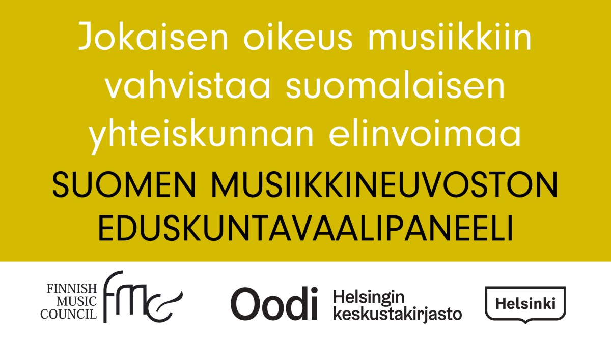 Jokaisen oikeus musiikkiin vahvistaa suomalaisen yhteiskunnan elinvoimaa! Suomen musiikkineuvoston eduskuntavaalipaneeli järjestetään Helsingin keskustakirjasto Oodissa Saarikoski-matolla (3. krs.) maanantaina 6.3.2023 klo 17-18.30. Paneelissa keskustellaan eri puolueiden ehdokkaiden kanssa taide- ja kulttuurialan ja erityisesti monimuotoisen musiikkikenttämme toimijoiden merkityksestä, tukemisesta ja kehittämisestä. Keskustelemassa ovatSilvia Koski (ps.)Mikko Kärnä (kesk.)Minna Lindgren (vihr.)Matti Niiranen (kok.)Nasima Razmyar (sd.) Keskustelua moderoi musiikintutkija, FT Lasse […]